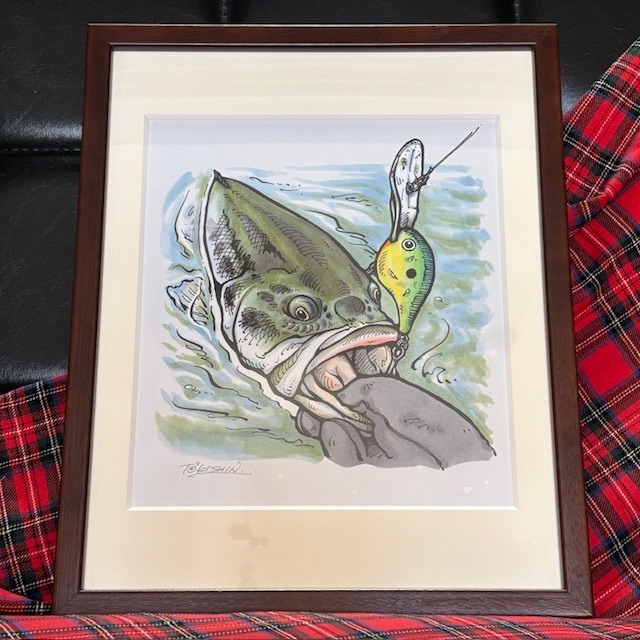 国内は送料無料でお届け致します。 この原画の売り上げの10%は能登半島地震の被災地支援金として寄付させていただきます。 ◉作品詳細 月刊ロッドアンドリール 2001年4月号掲載の記事より。 1月10日の奥多摩湖。 雪積もる中、深場をスプーンのリフト&フォールで探って釣った43cmのバス。 5年間60回の連載の中でもベスト5に入る思い出深い取材の中釣り上げた最高にうれしかった1匹を描いています。 今でもヒットした時の「ググっ!」という感触を思い出しちゃいますよ。 額サイズ:八切り(302mm×241mm) お求めいただいたお礼として、直筆イラスト&サイン入りミニ色紙と掲載ページのコピー、それからこの時使ったチヌークではありませんが、僕のスプーンボックスの中からアライくんスプーンをひとつをおつけ致します。 鮑シートを貼ってちょい手を加えたもので、ロストすることもなく20年以上愛用してきました。 沖縄のイシミーバイもこれでたくさん釣っています。 このサイズのスプーンは野池で遊んだりするときも楽しいですよ。