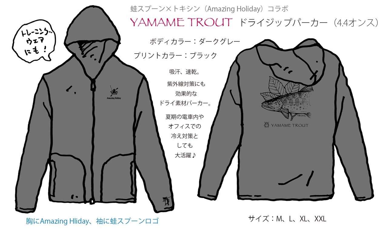 蛙スプーンさんとのコラボでドライジップパーカーも登場致します。
