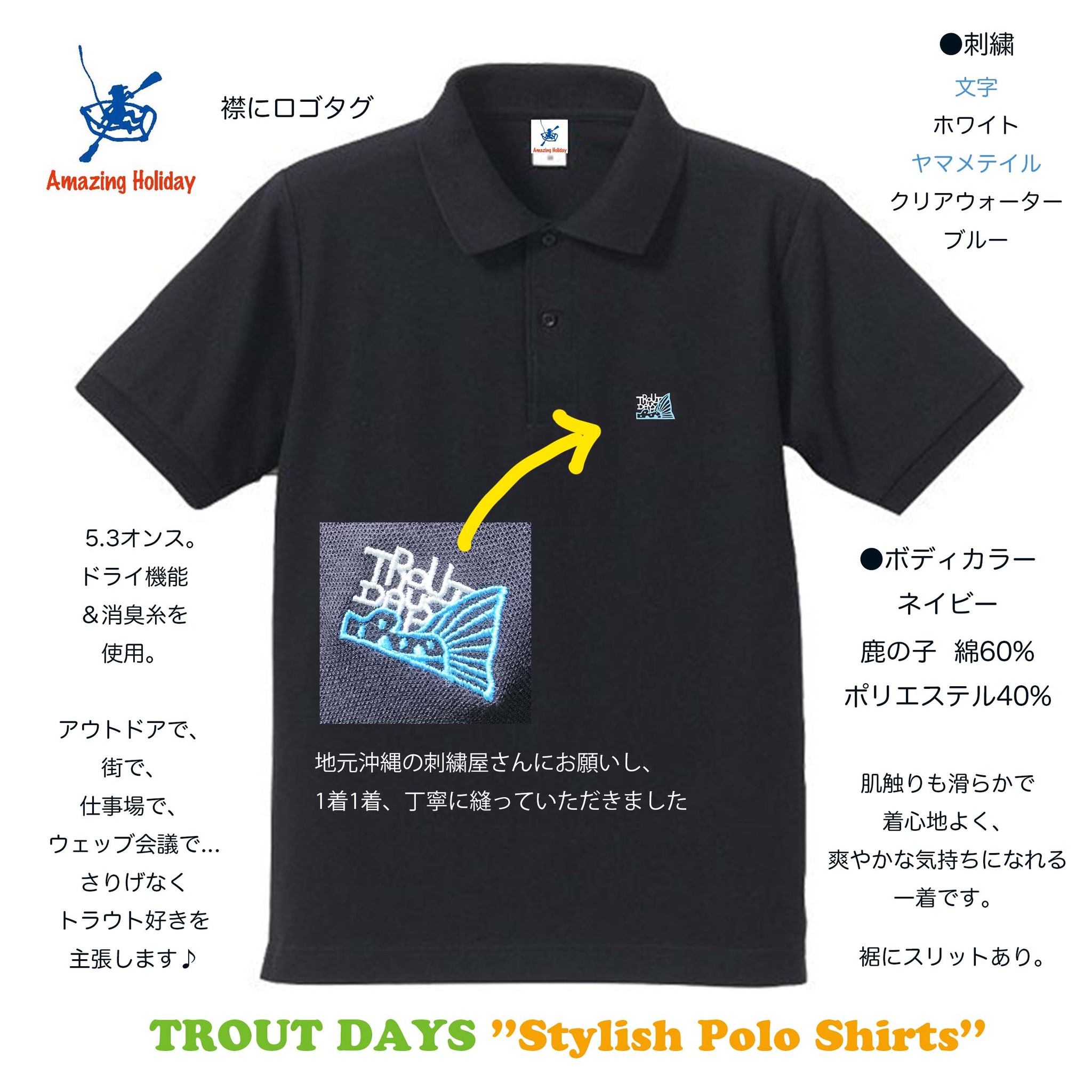 ◉TROUT DAYS ‘’スタイリッシュ 刺繍 ポロシャツ‘’
