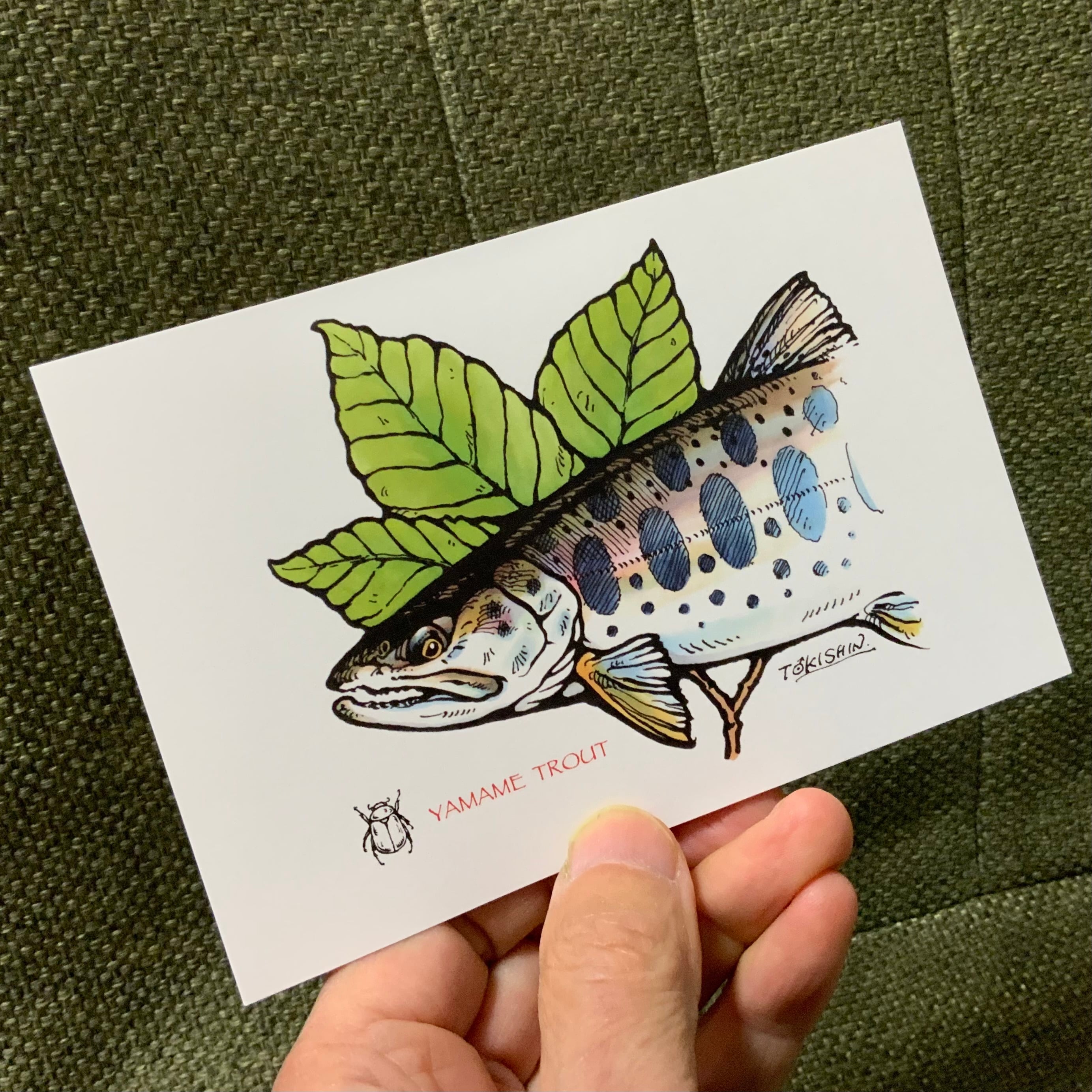 お求めいただいたお礼としまして、直筆サイン入りカラーイラストミニ色紙と、ヤマメのカードをおつけ致します。