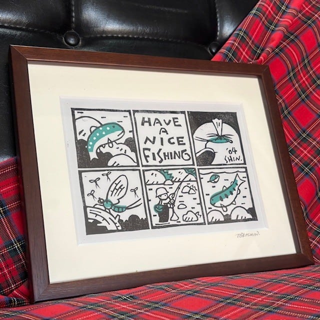 以前フライフィッシングテーマで個展を開いたことがあるのですが、その際に刷って販売したものとは別に、個人保存用に残しておいた1枚。