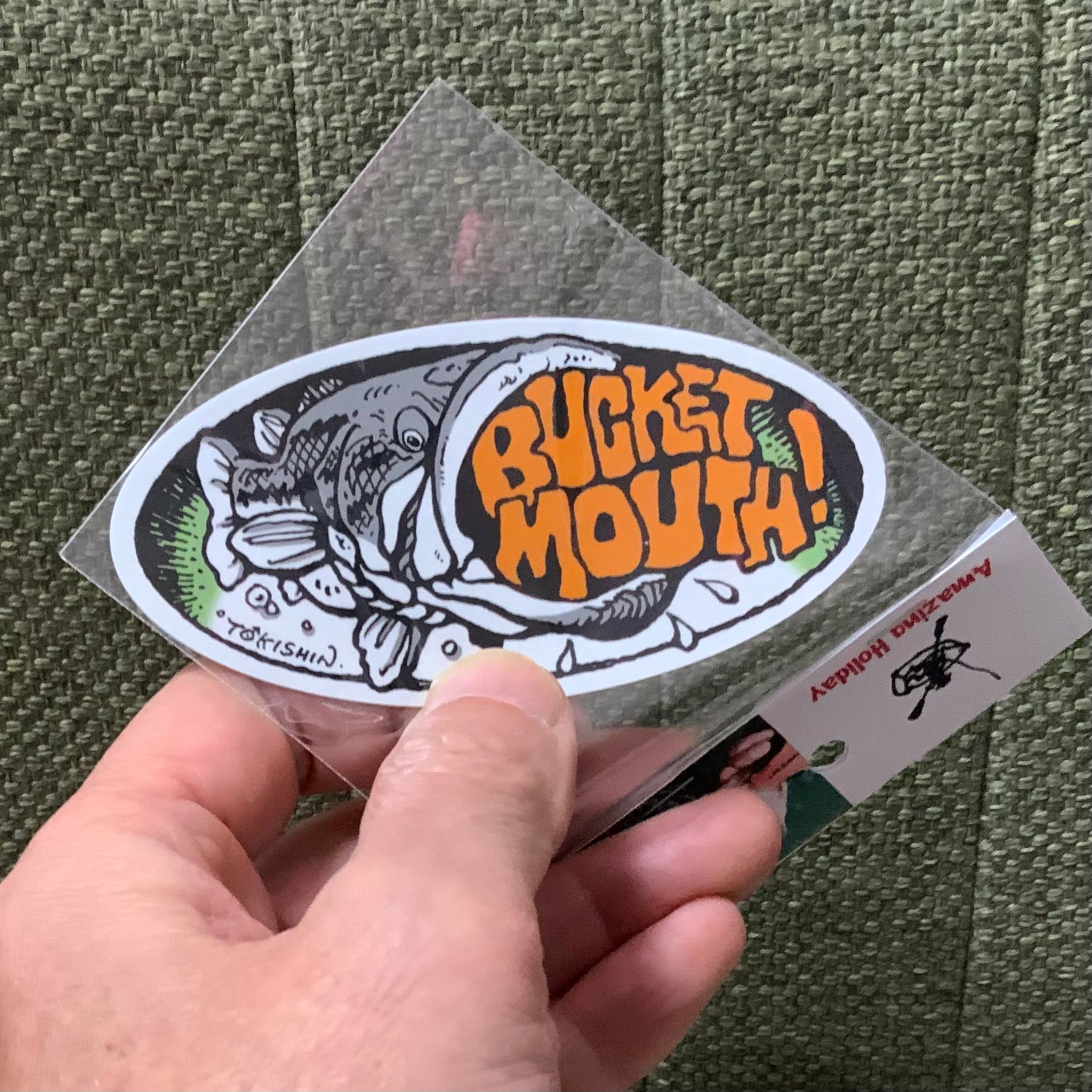 お求めいただいたお礼として、直筆イラスト&サイン入りミニ色紙と掲載ページのコピー、それからBUCKET MOUTH! ステッカー(小)を一枚おつけ致します。