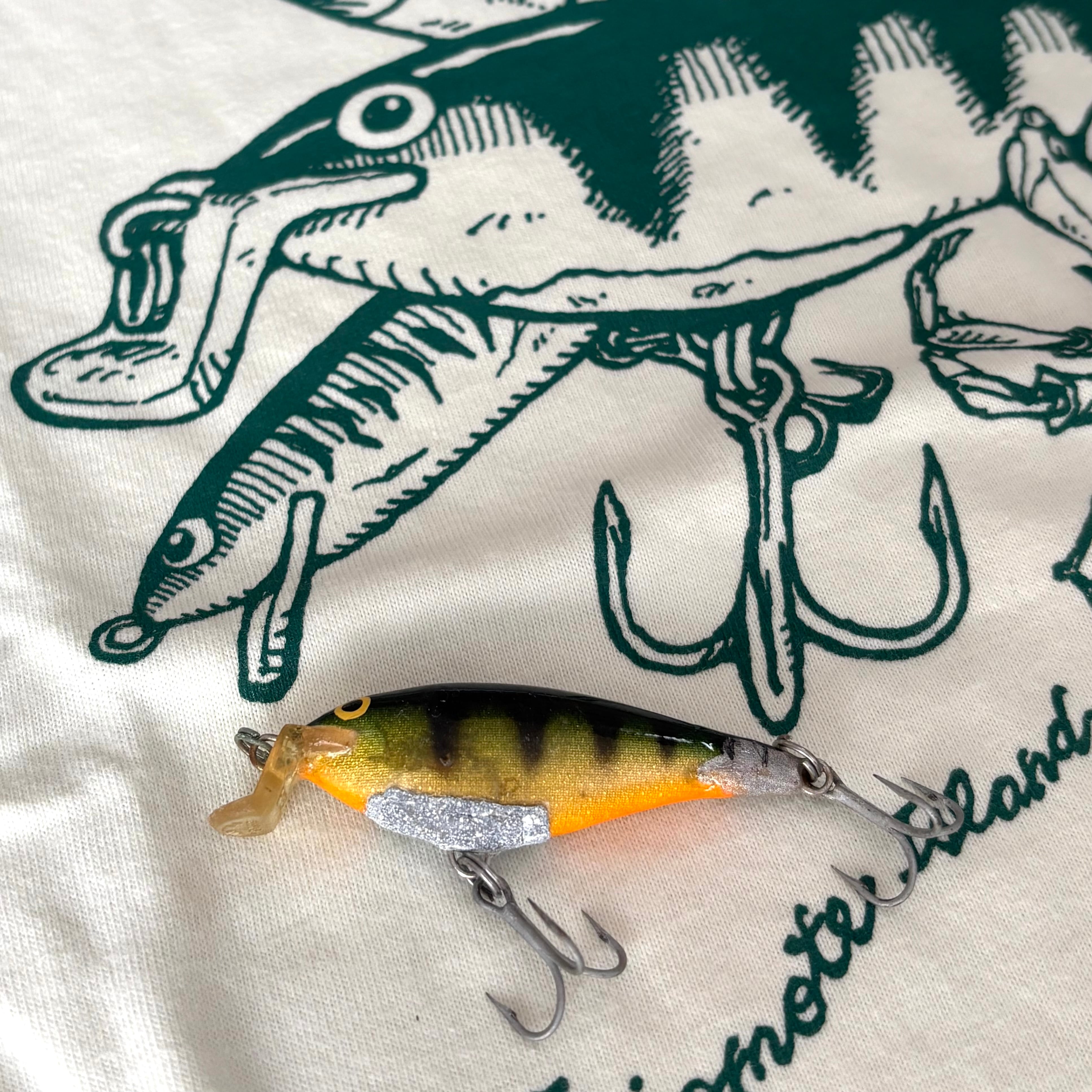 この島のマングローブリバーの釣りでとても実績のあるラパラのシャッドラップなどのルアーをモチーフに描いたデザインです。