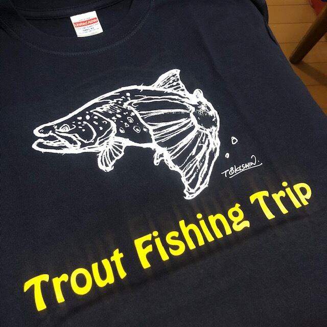 Trout Fishing Trip Tシャツ 個展バージョン ネイビー Lサイズ