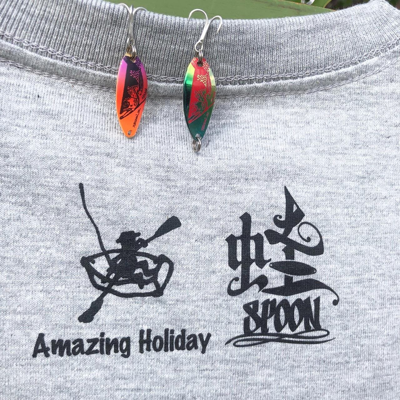 バックの襟元には、Amazing Holidayと蛙スプーンのロゴが入っています。