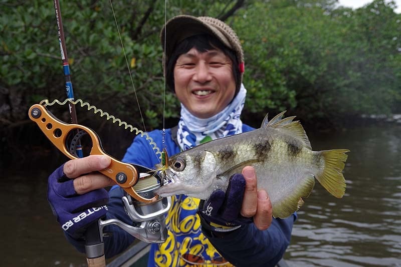 西表島のマングローブ生い茂る川の汽水域にテッポウウオは潜んでいます。