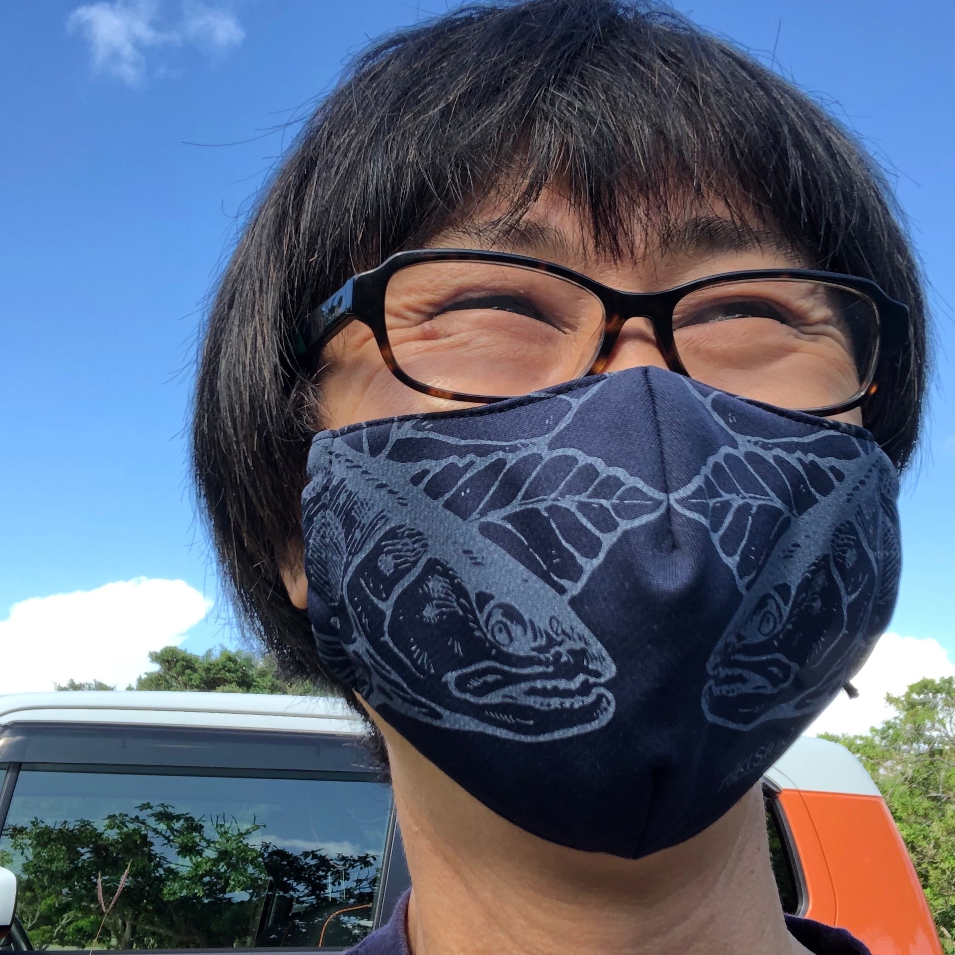 ステッカー付き。ヤマメの和みマスク