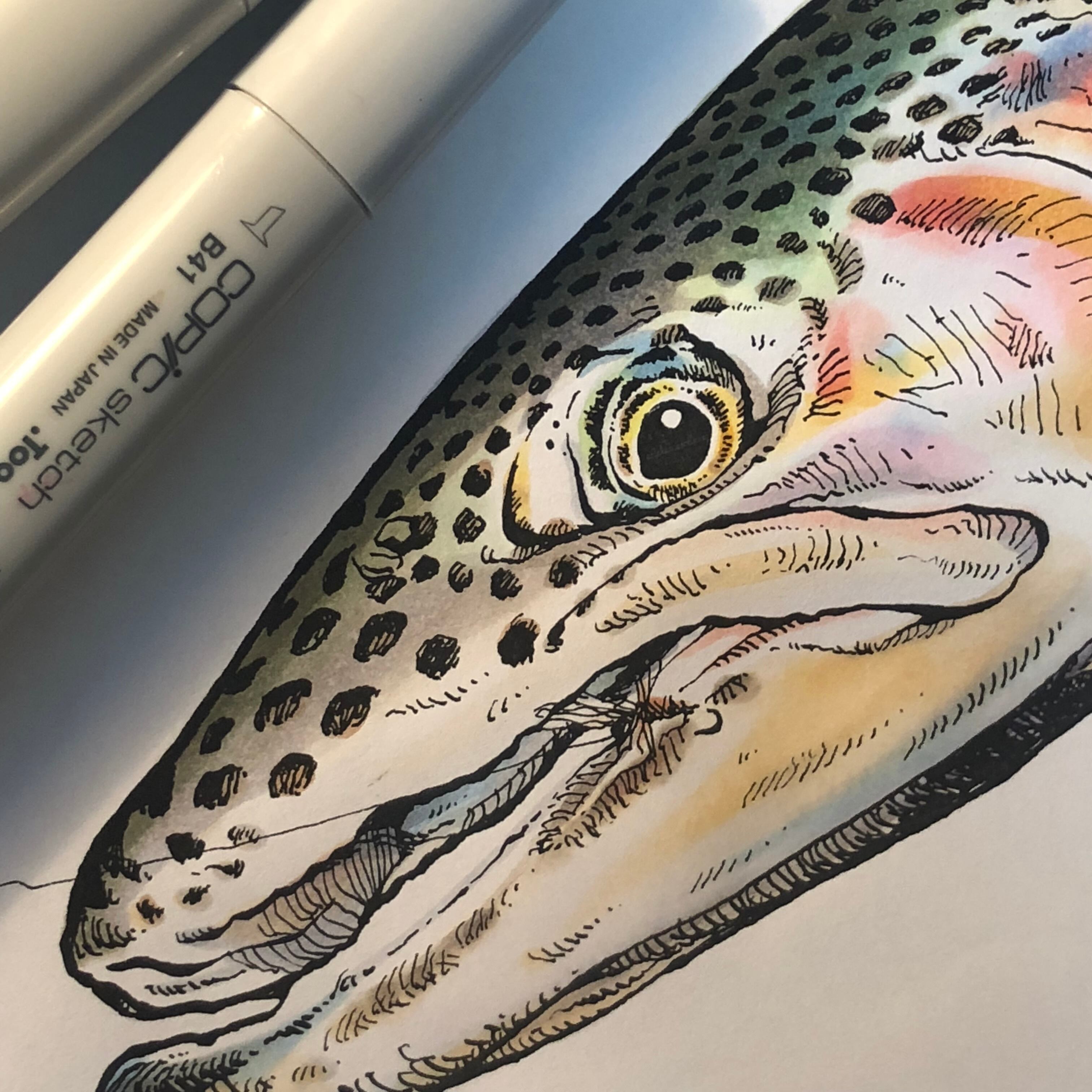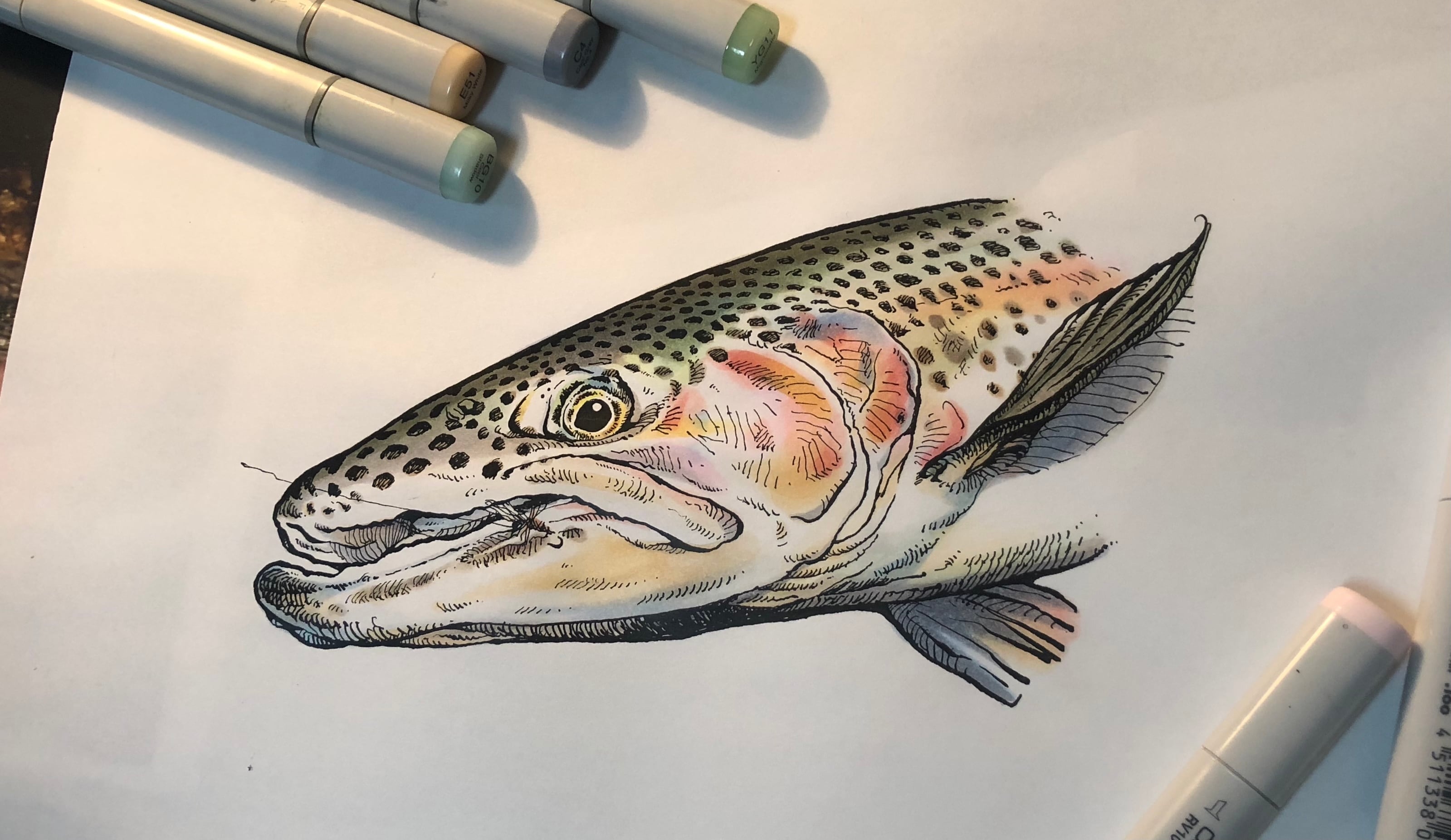 その時に釣った中でいちばん思い出に残っている1匹を描いたのがこの作品で、その年の暮れに都内で開いた個展『Trout Fishing To New Zealand』で展示致しました。