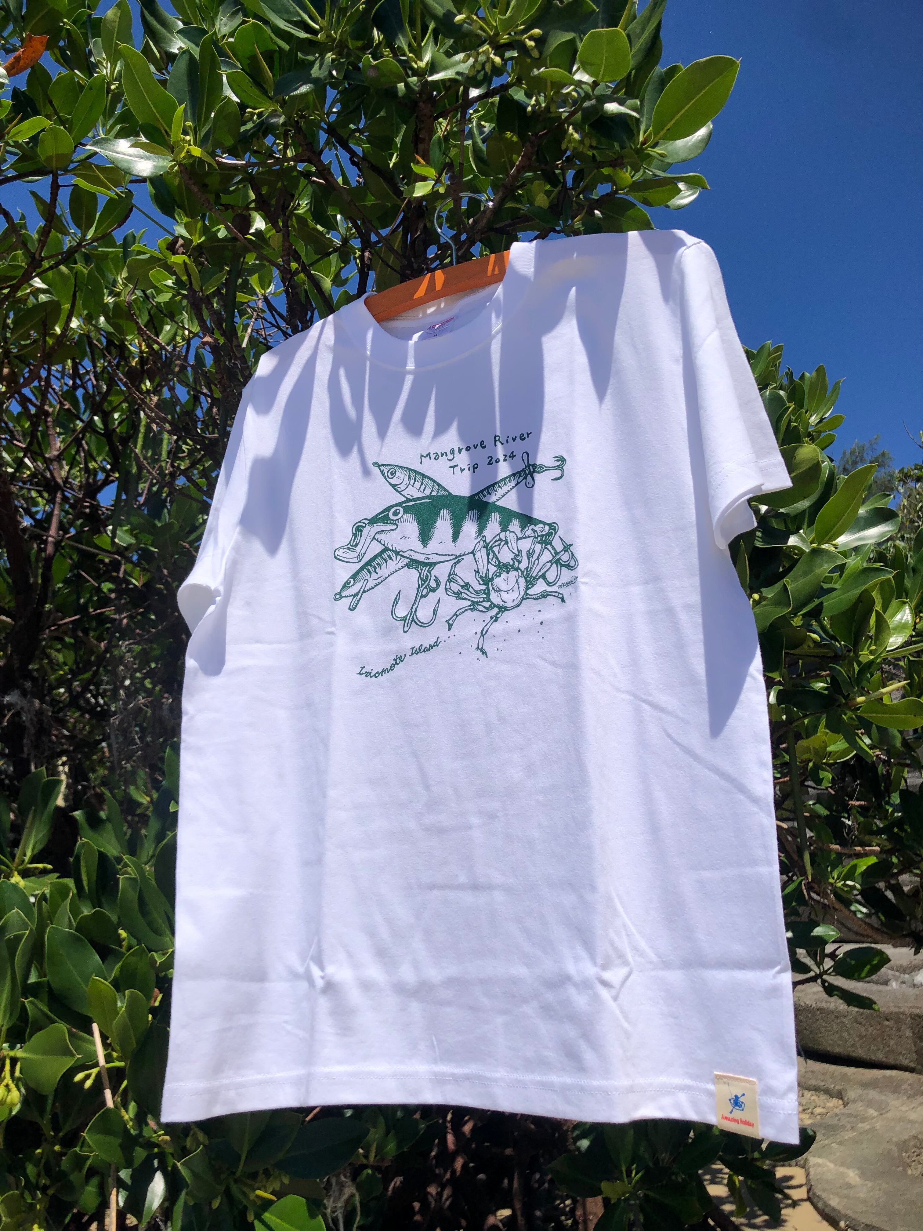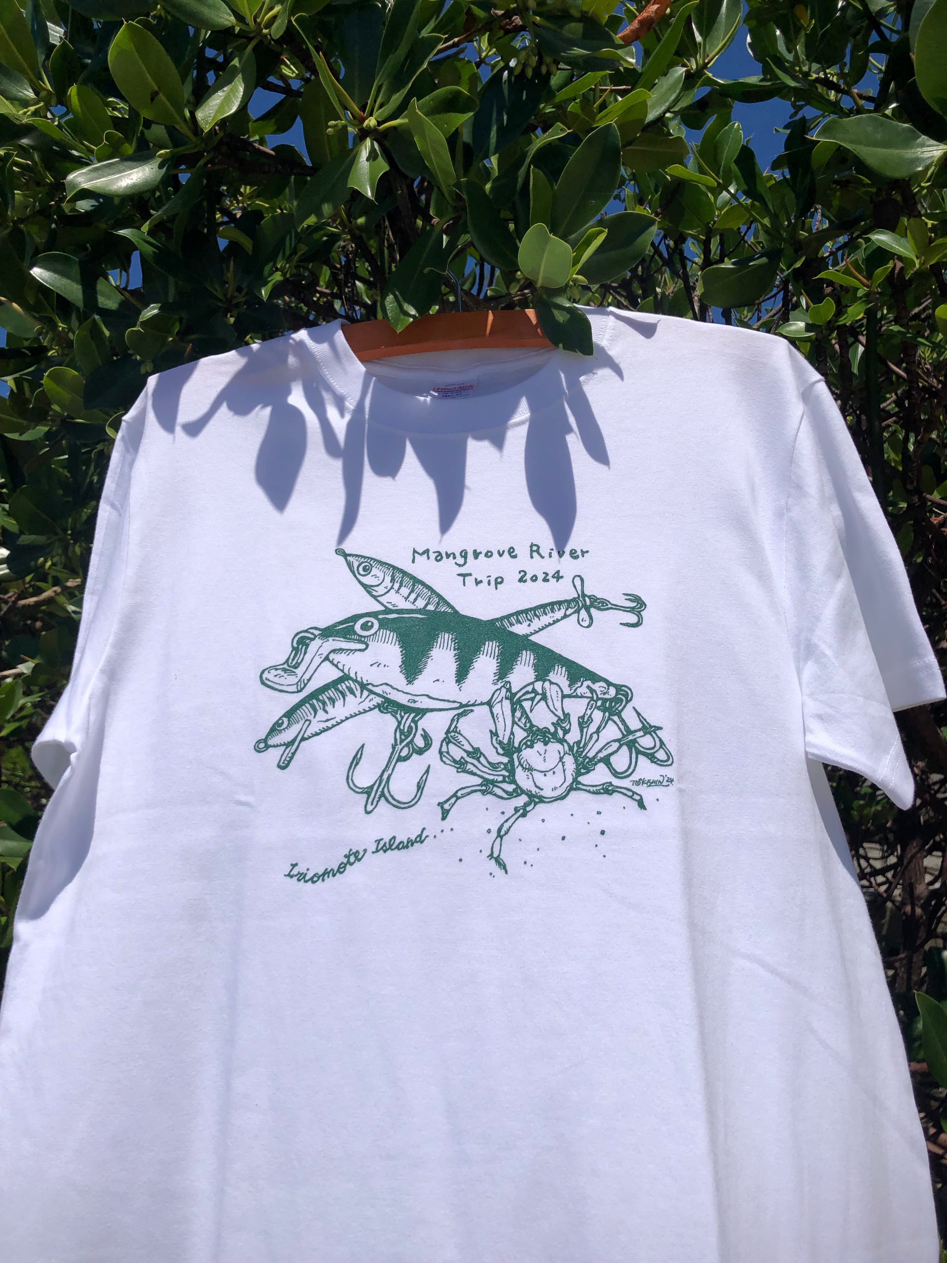 Mangrove River trip 2024 綿Tシャツ ホワイト(プリント色 ジャングルグリーン)
